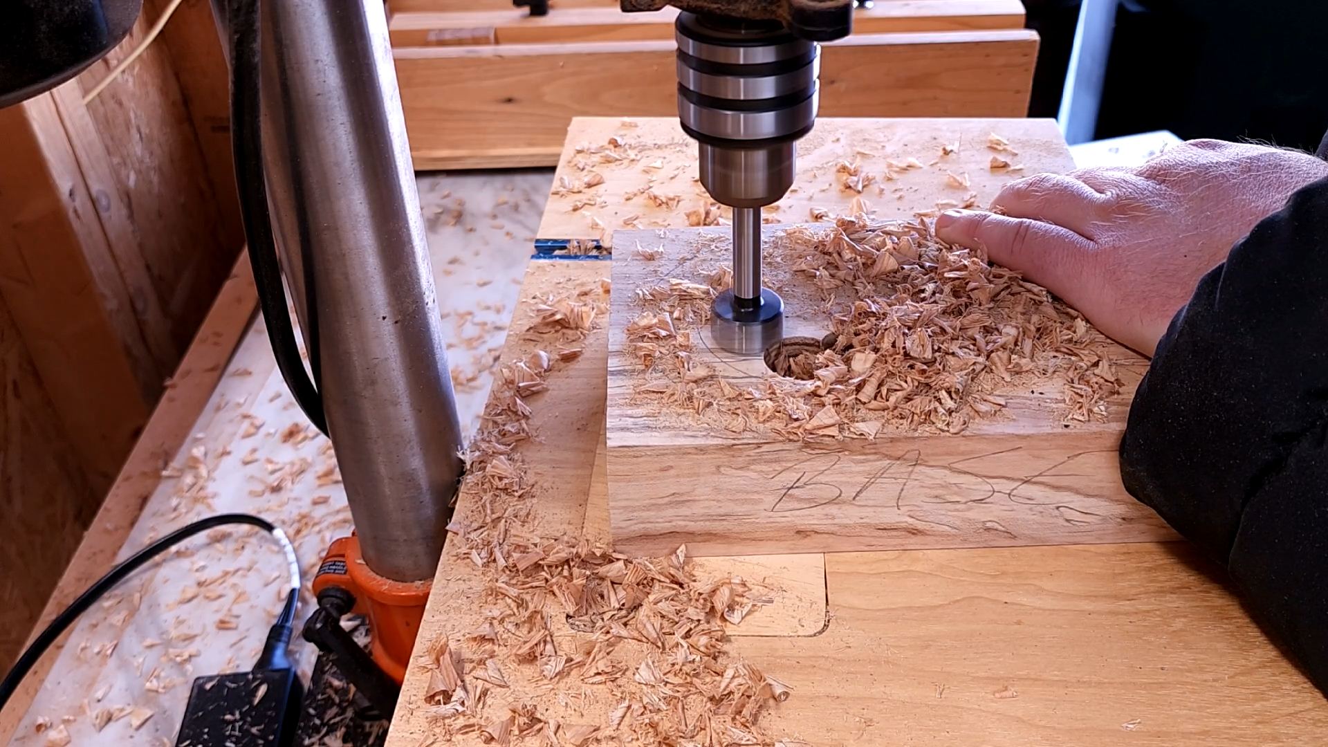 I do this because my drill press is….(how do I put this nicely)…..inexpensive. The depth stop is such a pain to use that I would rather eyeball this part than mess with it. This part really isn’t too serious, just get close to or right at flush with both magnets and your lid will work fine.