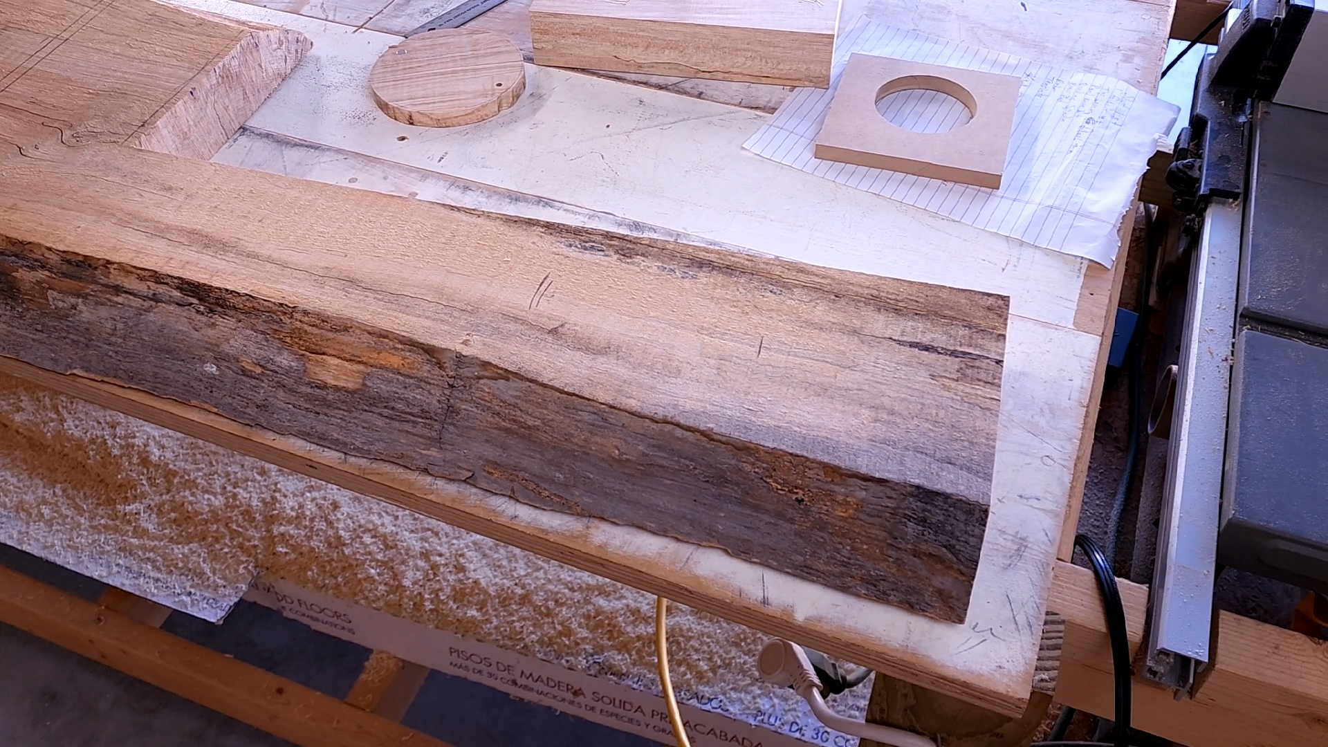 I am using 8/4 spalted maple. Before milling and re-sawing, I layout the sections that will be used for the bases and what section will be used for the lids.