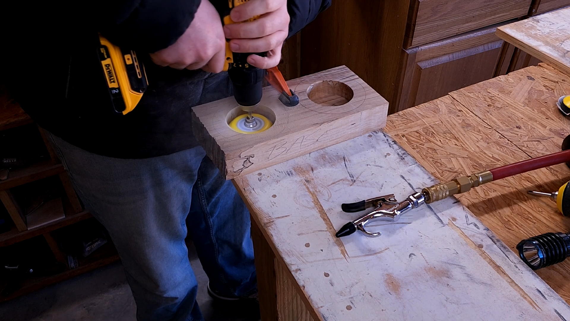 It may look like I am pressing on the drill but I am keeping it rigid. You don’t want to press down very hard at all. You’ll end up with deep scratches.