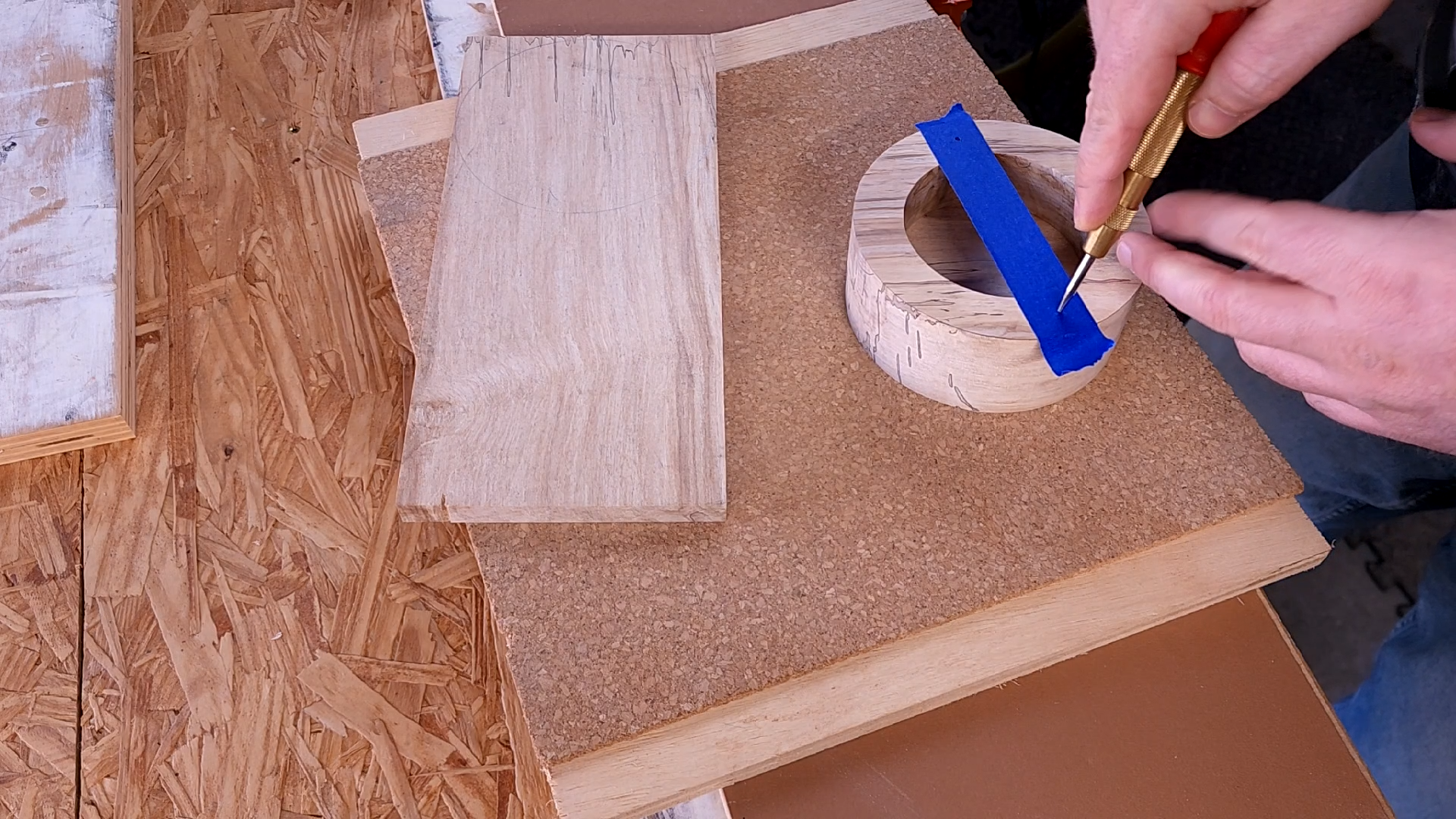 I transfer that blue tape to the lid blank and do my best to be centered on the lid just like the base.